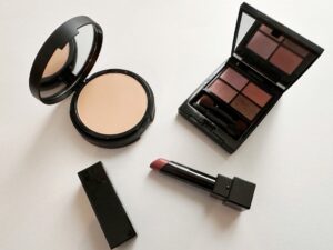 リキッドやクッションの後にフェイスパウダーを軽く重ねると、ヨレ防止やテカリ防止に効果的。特にマスク生活では必須のステップです。