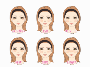 - 面長 → 頬の中央に丸く入れると縦の長さを緩和できる